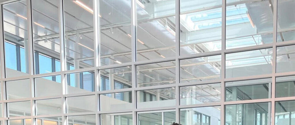 The new 125,000 SF LEED gold facility for the School of Informatics and Computing building features unique elements including a sawtooth wall system design. To maximize daylight for the space, glass skylights were strategically placed in learning areas throughout the building. Daylighting studies have found that classrooms with access to plentiful natural light can lead to higher test scores and better academic outcomes. In addition, it can improve circadian rhythms and lead to reduced absenteeism and increased productivity in workplaces.