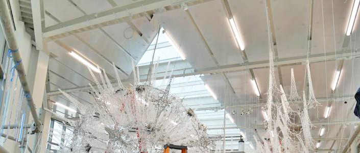 In total, approximately 18,240 SF of the Flexi-Panel system was installed throughout the building. The panels were factory cut to size, varying shapes such as triangle, trapezoid, rectangles with cut out, up to 8’ long and 5’6” wide.