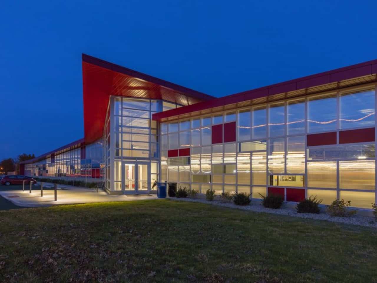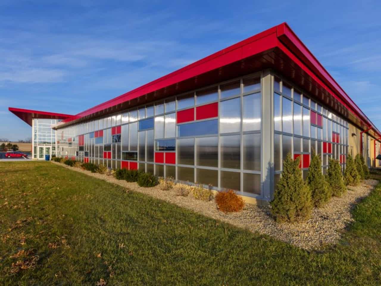 EXTECH’s LIGHTWALL 3000 series curtain wall system was selected for the project because it is one of the few that properly accommodates both polycarbonate and glass glazing within the same system. This is accomplished by using deep glazing pockets and low friction gaskets that allow for the thermal movement of polycarbonate, while still providing superior water and air infiltration resistance.